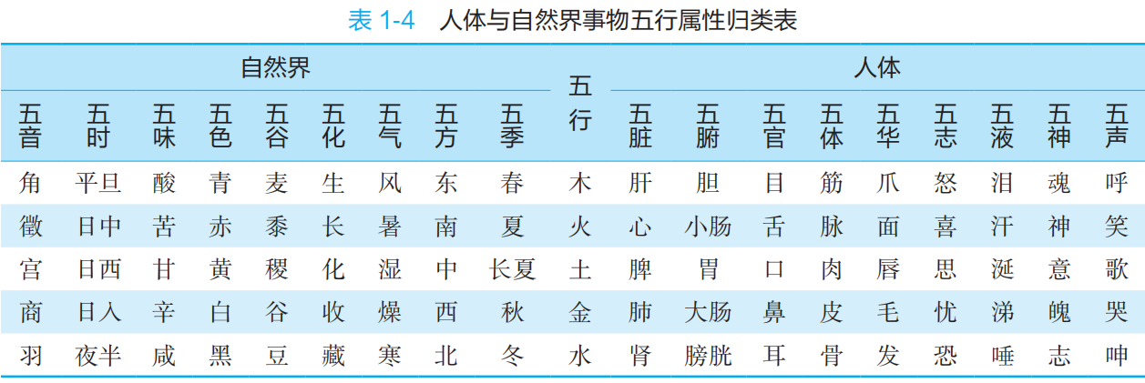 P20 表1-4 人体与自然界食物五行属性归类表